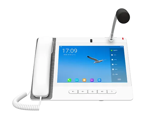 Available in Gunmetal Gray and White; Built-in 8MP camera (with privacy cover), adjustable angle; Equipped with PTM button mute handle, optional standard/PTT button call handle; Supports wideband audio decoding G.722, Opus; Built-in 2.4G/5G Wi-Fi and Bluetooth 5.0; Supports H.264 video codec, supporting video calls; Gigabit dual Ethernet ports, supports PoE power supply;